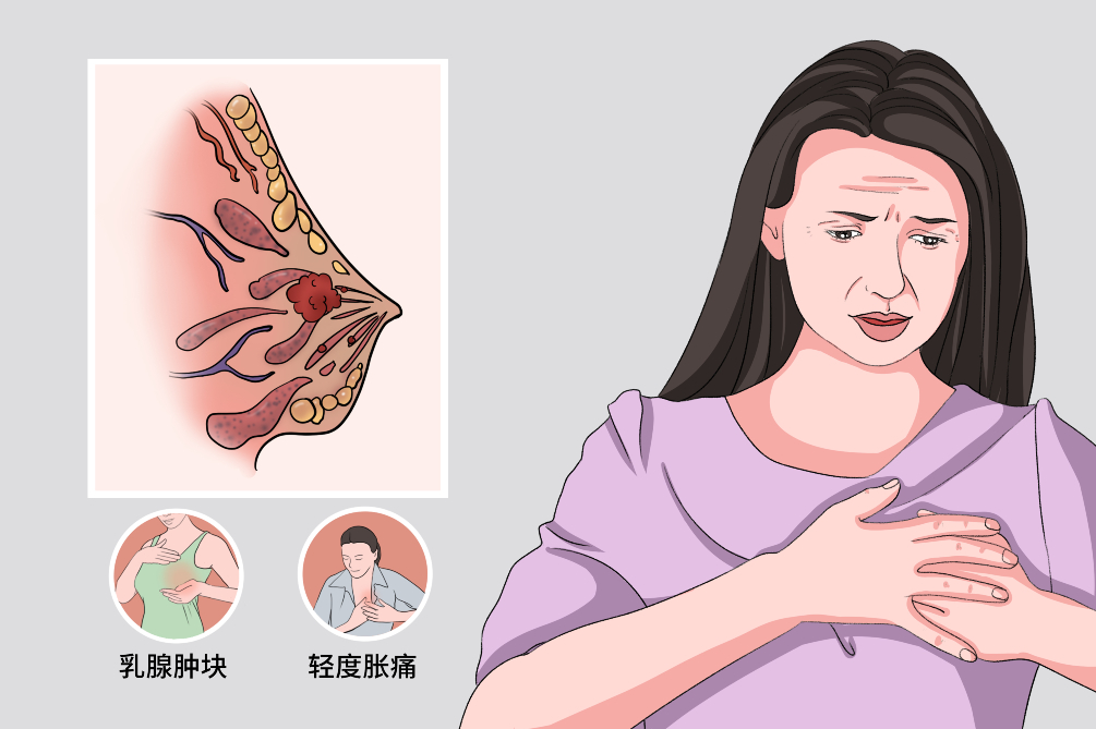 患者要是表现出乳腺局部无痛性肿块、乳房外形及皮肤表面改变等症状,需及时前往乳腺外科、普外科、肿瘤科就诊。