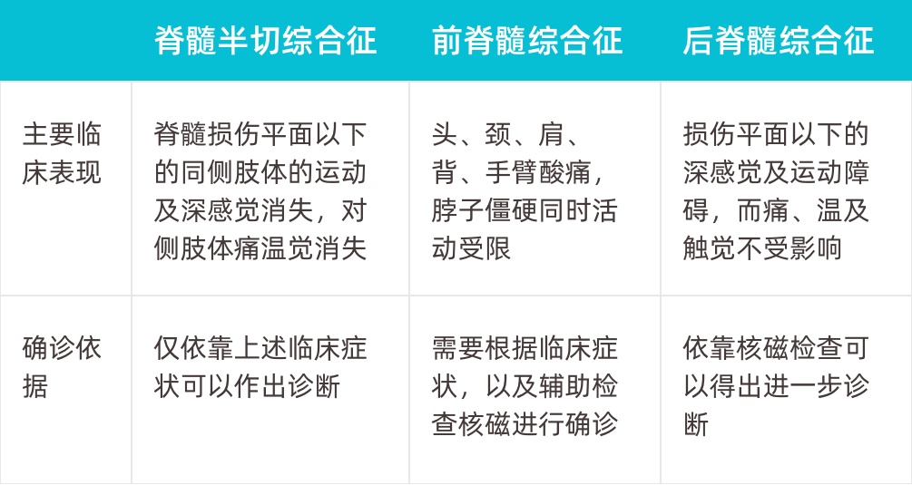 当患者出现神经功能障碍需要去神经内科进一步检查,有外伤或刀伤时,需要立即就诊于骨科,可以完善X线、CT和核磁予以诊断,但需要脊髓半切综合征与前、后脊髓综合征进行鉴别诊断。