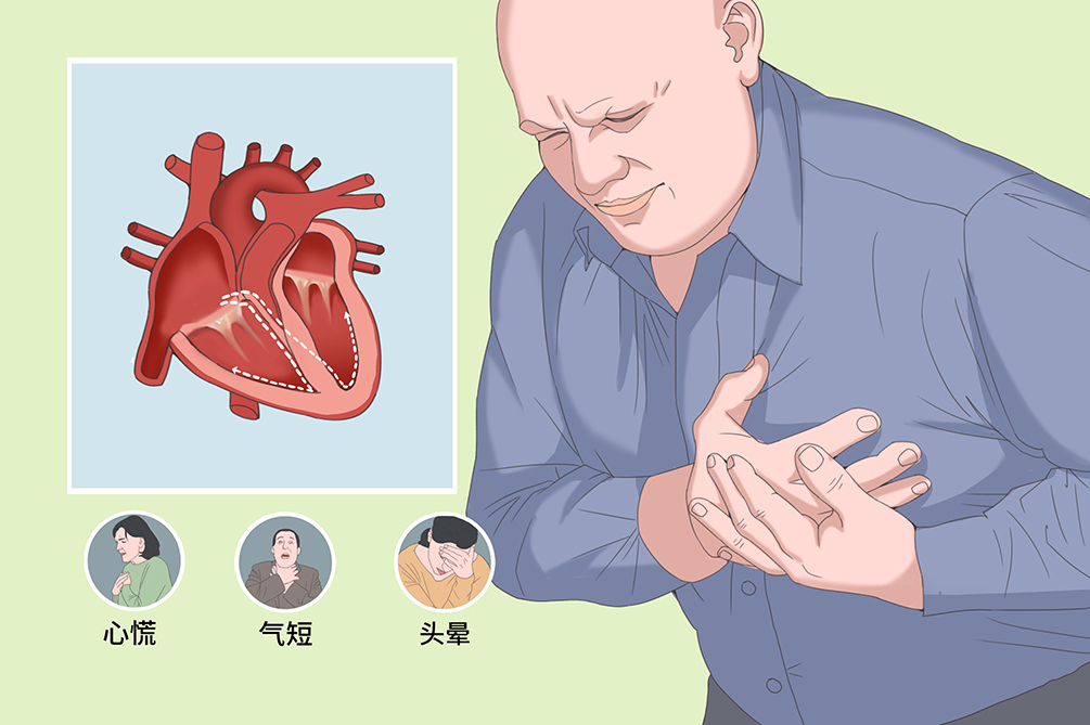 肥厚型心肌病患者,在心脏传导阻滞的同时多伴有胸闷、气短等情况。