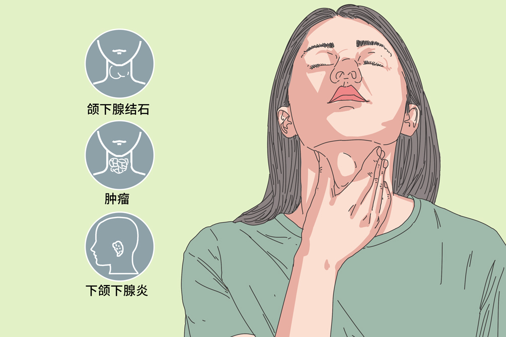 引起颌下腺肿大的原因众多,有感染、良性或恶性肿瘤以及内分泌失衡、免疫调节缺陷等,唾液腺结石是最常见的病因之一。