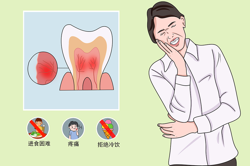 牙髓炎很多情况下,由龋病进展而来,患者除牙齿神经痛也经常伴随着较深的龋洞和食物嵌塞。