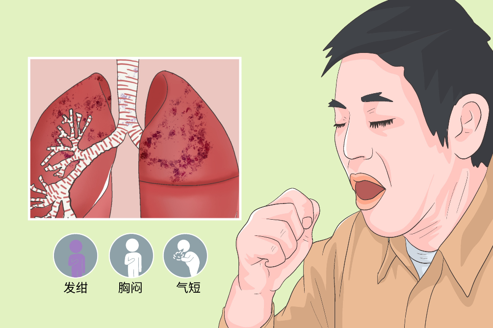 主要症状为呼吸频率加快,严重者呼吸困难,可出现发绀、喘息、胸闷、胸痛、全身乏力、心动过速等。