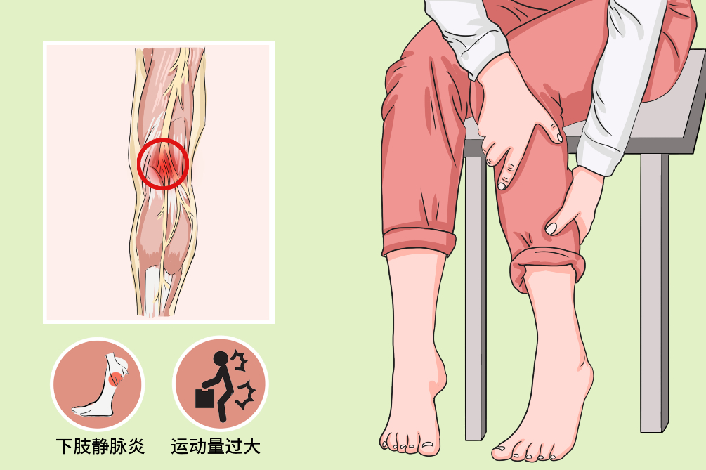 小腿酸痛最常见的原因为运动量过大、长期站立、肌肉拉伤,也可见于其他疾病的伴随症状,例如下肢静脉曲张、下肢静脉血栓形成、低钙血症等。