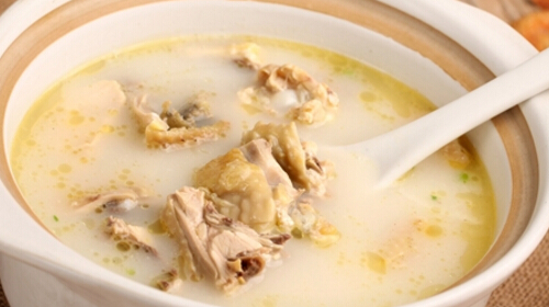鸡汤是用鸡肉熬制而成,鸡的肉质细嫩,滋味鲜美,适合多种烹调方法,并富有营养,有滋补养身的作用。鸡肉的蛋白质的含量颇多,在肉之中是蛋白质最高的肉类之一,属于高蛋白、低脂肪的食品。