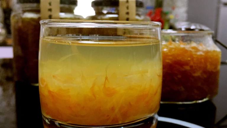 柚子将表皮切丝后可先用盐水泡半小时,以改善口感。