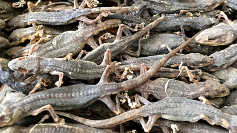 守宫尿液如果接触皮肤,需立即清洗,否则经皮肤吸收后,轻则皮下组织充血、水肿、出血、坏死,重则损伤中枢神经系统,引起脊髓的严重不良性改变,捕捉时不可不慎。