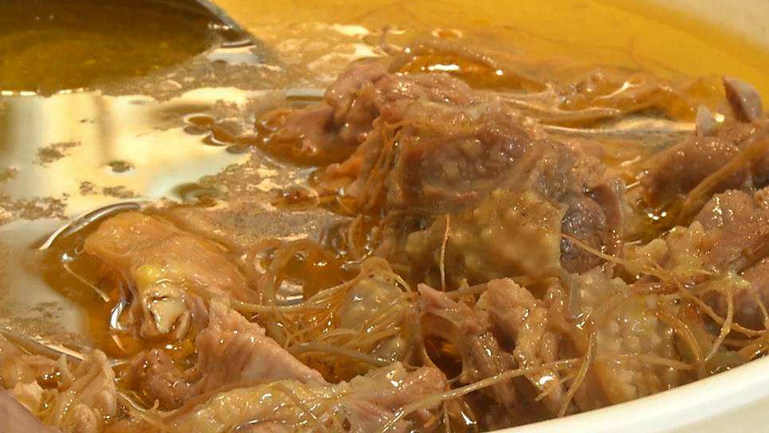 鲜鸡买回来后,应先放冰箱冷冻室冰冻3-4个小时,再取出解冻炖汤。炖鸡时先将鸡肉飞水,去掉生腥味,使成汤清亮不混浊,鲜香无异味。在放入田七的时候,因为田七有一种苦涩的味道,如果不以药用为目的,可适量减少分量,以减低汤的苦味。