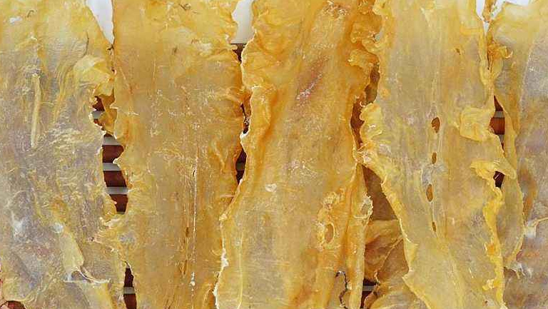 把鳕鱼胶放在水里浸泡,可以帮助鉴别真假,真的鳕鱼胶泡几小时后依然是完整的。