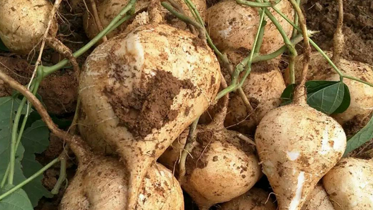 地萝卜食用部分为其地下块根,富含糖类、蛋白质,而且地萝卜属植物块茎,含有丰富的膳食纤维和木质素,无论是生食还是熟食,其所含的膳食纤维都会在胃内吸水膨胀,增加饱腹感,促进胃酸分泌,增强肠道的蠕动,促进排便,有健胃消食、排毒的功效。