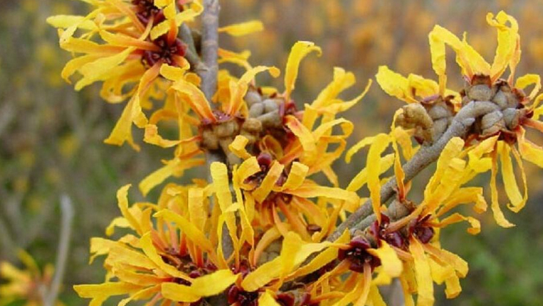 金缕梅叶片含有石钛酸、五倍子、咖啡酸、单宁、黄酮类衍生生物和碘,树皮含有黄酮醇,有助于炎症的缓解及自由基的清除。