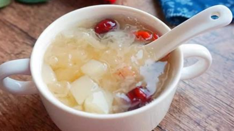 银耳雪梨汤的富含天然胶质和膳食纤维,美容效果颇佳,孕妇适量食用不仅可以润泽肌肤、淡化色斑,还可以改善孕期便秘。