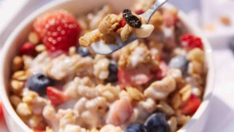 水果麦片中的纤维素、碳水化合物、维生素C、维生素B、维生素A的含量丰富,还含有大量的植物蛋白、镁、维生素B1、磷、钾、铁、锌、铜、叶酸、泛酸等,可以改善血液循环,促进伤口愈合。