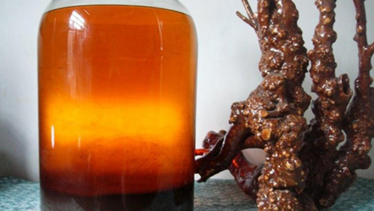 蜂胶中富含槲皮素、萜烯类、咖啡酸苯乙酯等黄酮类化合物,还含有芳香挥发油、烯萜类化合物、脂肪酸、有机酸、矿物质、蛋白酶、维生素等营养成分。与白酒一起制成蜂胶酒后更利于其营养成分的析出,使功效得到更大的发挥。