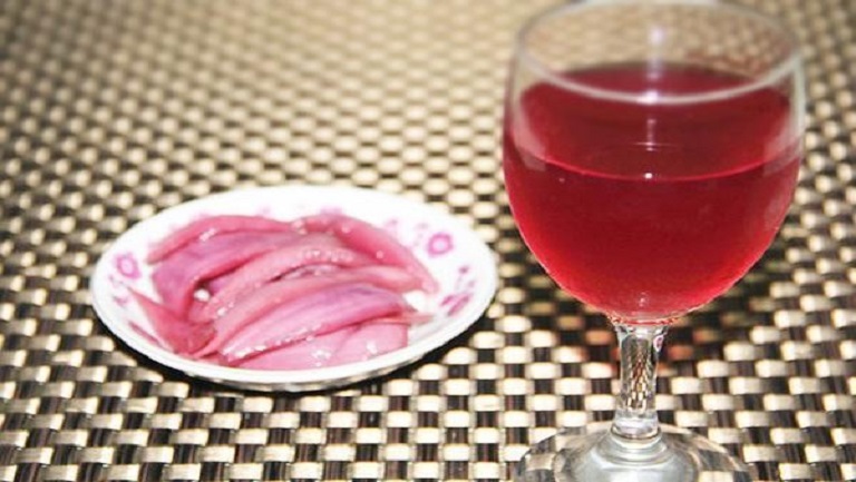 红酒洋葱含有氨基酸、糖分、维生素A、维生素B、维生素C、叶酸、纤维素、果胶以及钙、磷、钾、锌、硒等成分,以及含有多种植物化学物如槲皮素、多酚类、葱蒜辣素、苹果酸、酒石酸、挥发油。