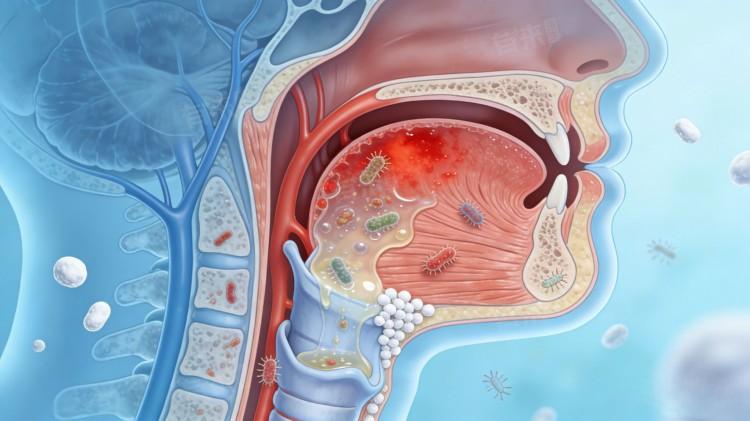 5、胃食管反流刺激:胃内胃酸、食物反流至咽喉部,会灼伤咽喉黏膜,引发黏膜水肿、分泌物增多,形成黏痰,常伴随反酸、烧心、胸骨后不适,晨起空腹时咽喉异物感、有痰症状更明显。
