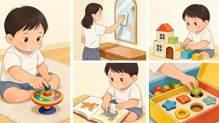 这类宝宝思维反应迅速,面对问题时能快速做出回应,具备初步的逻辑判断和解决问题的能力。比如能快速找到隐藏的玩具、学会简单的分类和配对,遇到困难时会主动尝试不同方法解决,而非单纯哭闹。同时,对数字、图形的敏感度较高,能较早识别简单数字和图形,展现出初步的抽象思维能力。