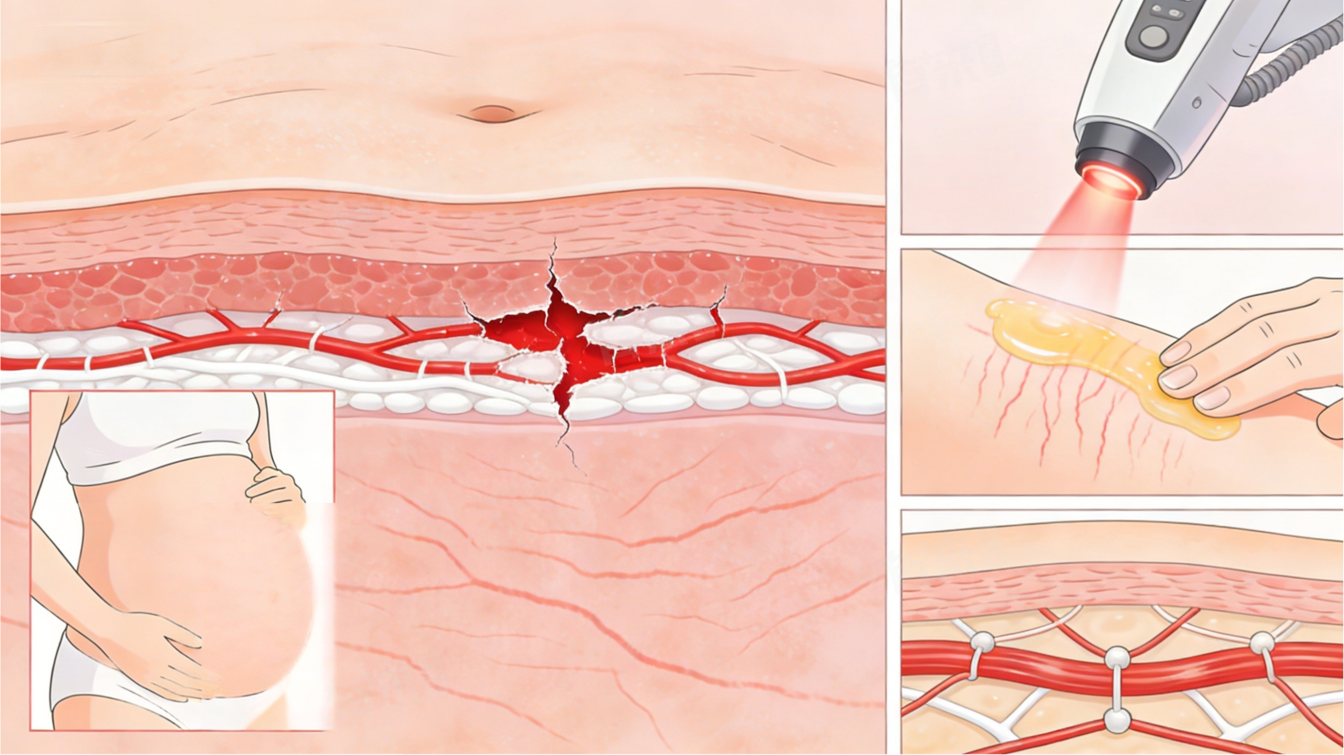 医学上认为,妊娠纹的改善效果与干预时机密切相关。产后3-6个月是黄金修复期,此时皮肤纤维尚未完全纤维化,通过规范护理和干预,能有效改善纹路颜色和平整度,减少明显程度。