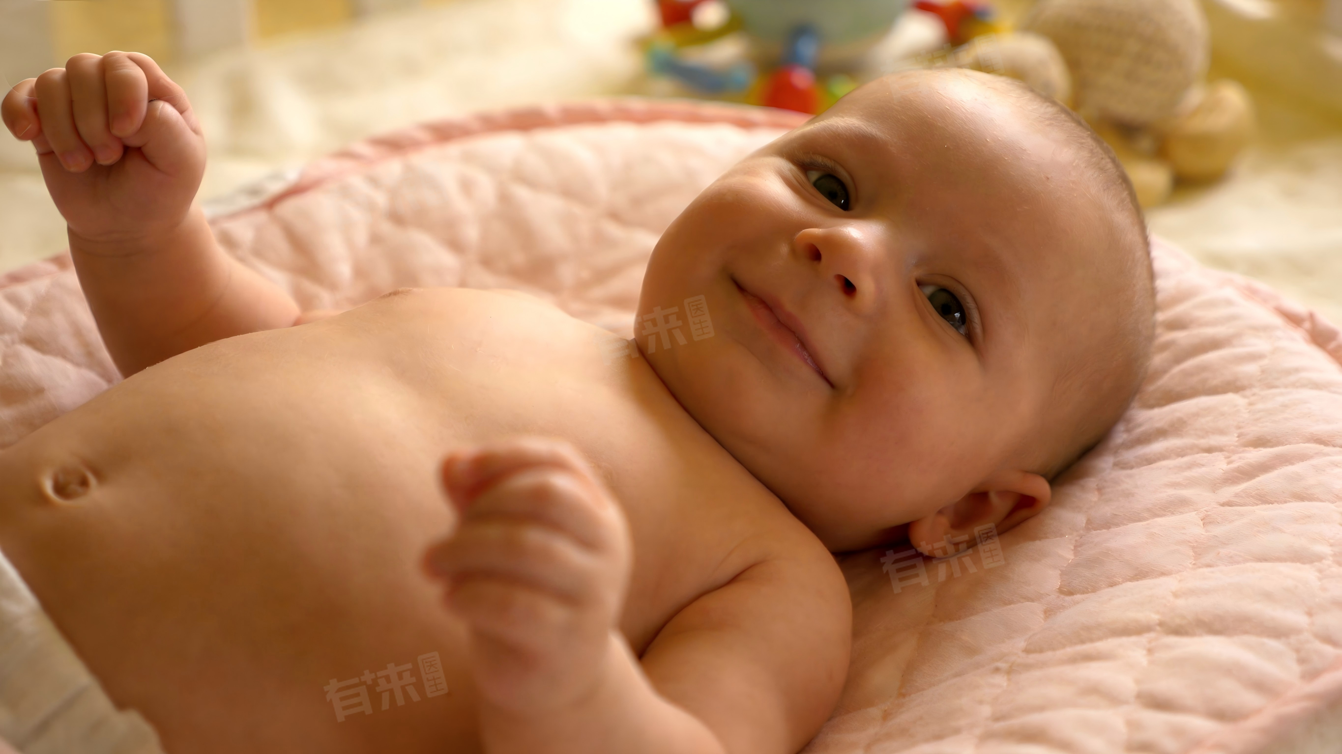 2、运动能力:俯卧时可抬头,头部能短暂抬起并左右转动,支撑头部时间约3-5秒。仰卧时可自由活动四肢,能将双手举至眼前,尝试抓握身边物品,腿部可自主弯曲、伸直,蹬腿有力,能带动身体轻微移动。