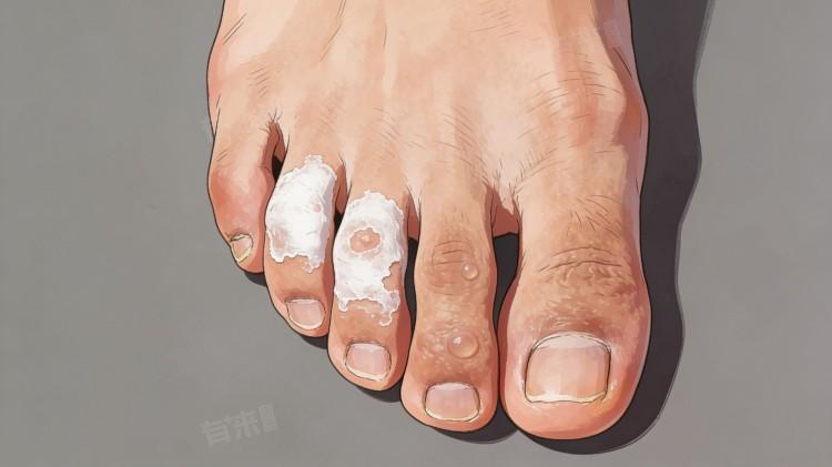 2、常见类型及症状:水疱型表现为足部出现散在或群集的小水疱,伴随瘙痒,水疱破裂后会出现脱皮;糜烂型表现为脚趾间皮肤发白、糜烂、渗液,瘙痒剧烈,容易继发细菌感染;鳞屑角化型表现为足部皮肤增厚、粗糙、脱屑,伴随瘙痒,冬季可能出现皲裂、疼痛。