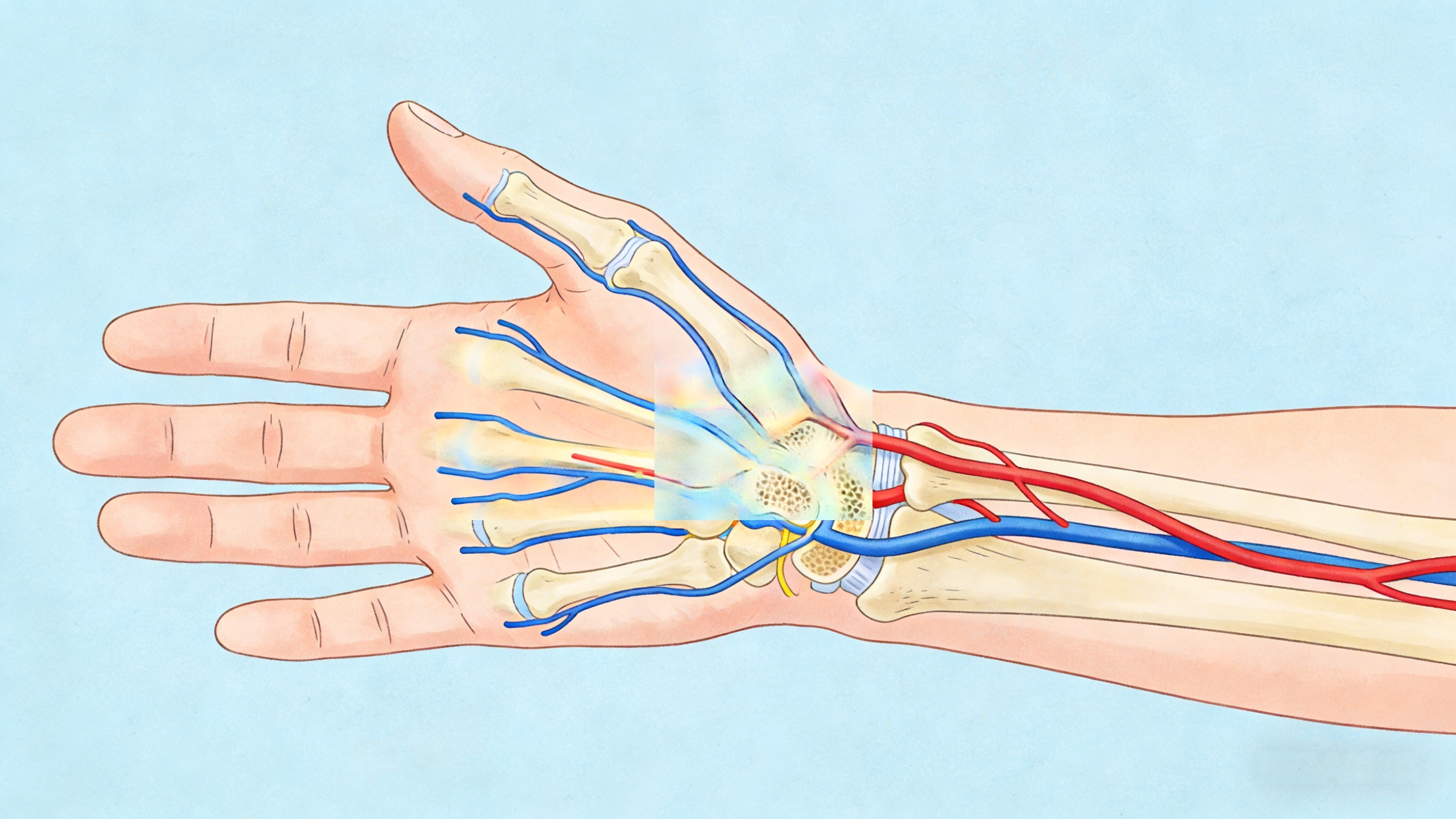 2、腕管综合征:属于局部神经卡压性疾病,程度轻于器质性神经损伤,多由左手长期劳损、腕部活动过度引发。腕管内压力增高,压迫正中神经,导致左手拇指、食指、中指发麻,伴随手指僵硬、活动时麻木加重,休息后可暂时缓解,长期不干预可能影响手指精细动作,需通过检查明确卡压程度。