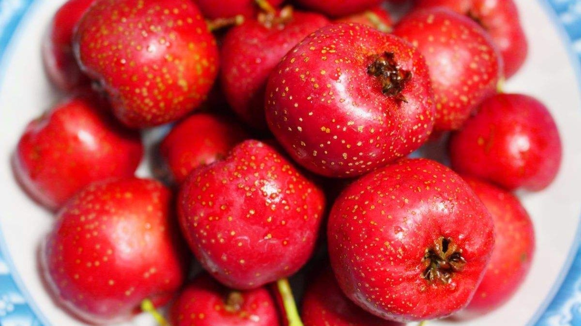 山楂含有大量的胡萝卜素、钙质、碳水化合物、山楂酸、果胶等。山楂中维生素的含量极高,仅次于红枣和猕猴桃,而且胡萝卜素和钙的含量较高。山楂具有防治心血管疾病,降低血压和胆固醇、软化血管及利尿和镇静等功效。此外,山楂中有平喘化痰、抑制细菌、治疗腹痛腹泻的成分。